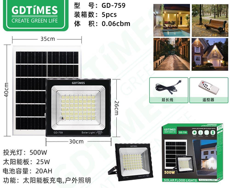 3. Lighting configuration: 6V25W solar panel, extension cord and remote control