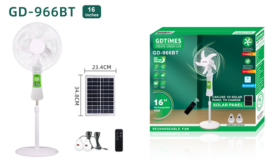 - Fan configuration: 9V 10W solar panel, 2 LED bulbs