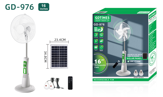 Fan configuration: 18V 10W solar panel, 2 LED bulbs